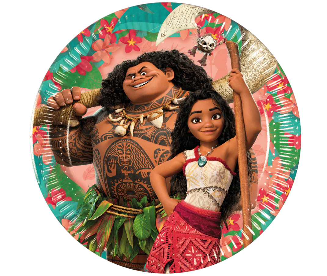 Set bestaande uit 8 kartonnen Vaiana bordjes (FSC) met een afbeelding van Vaiana en Maui.