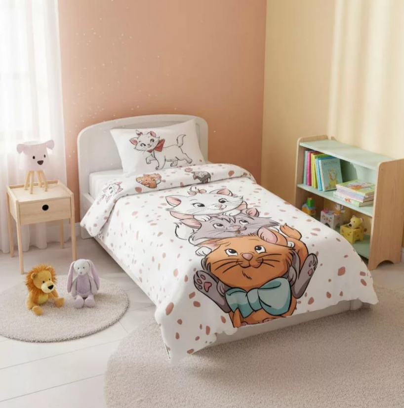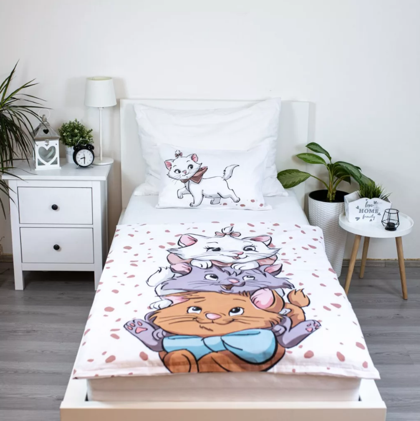 De Disney dekbedhoes is dubbelzijdig te gebruiken en zorgen ervoor dat je kleine schat met een glimlach in slaap valt. Met een afbeelding van Marie Cat, Toulouse en Berlioz.