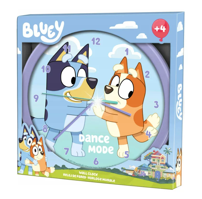Kunststof Bluey en Bingo wandklok met een doorsnede van ca 25,4 cm.