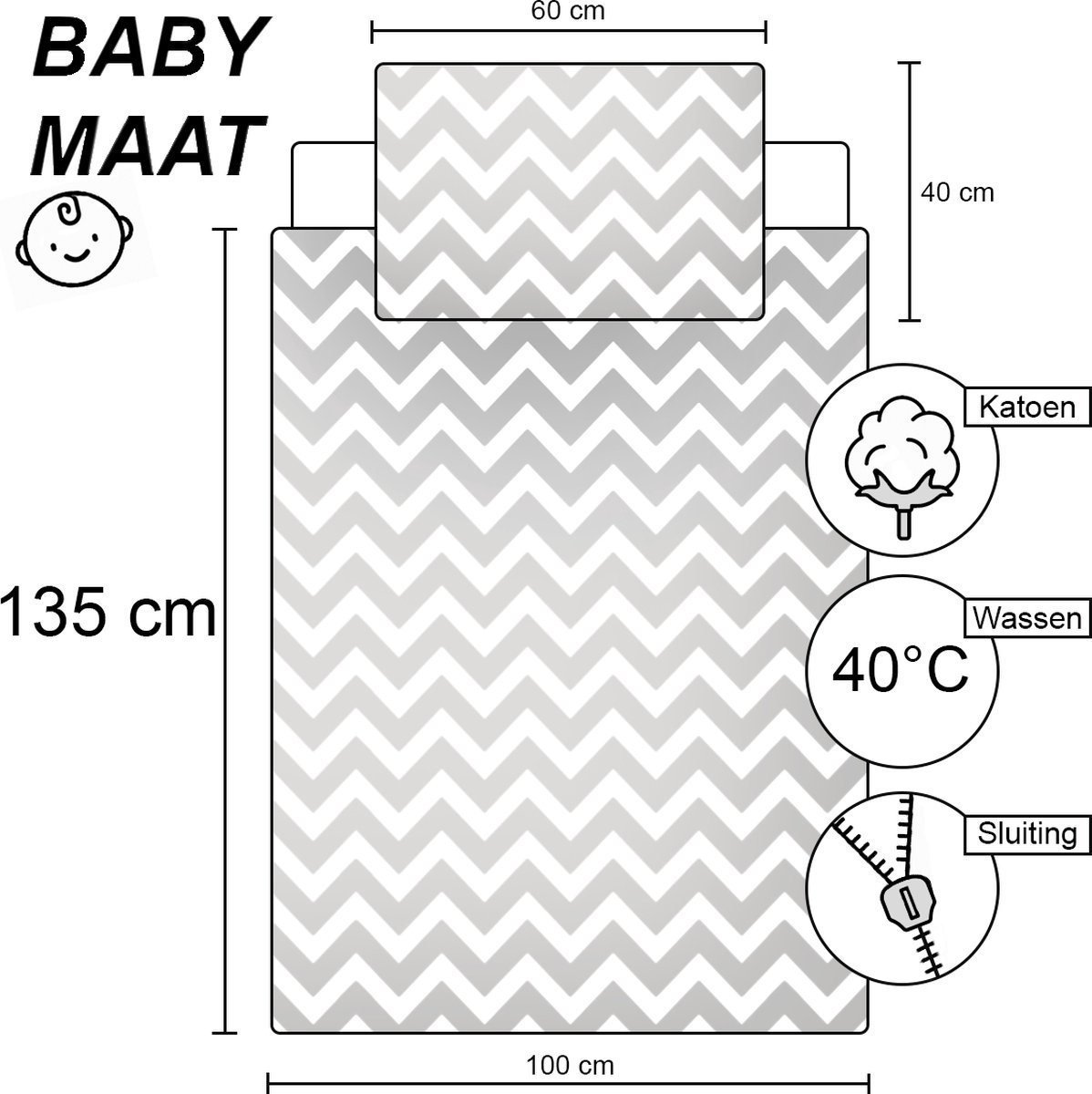 Afmeting dekbedovertrek: 100 x 135 cm.
