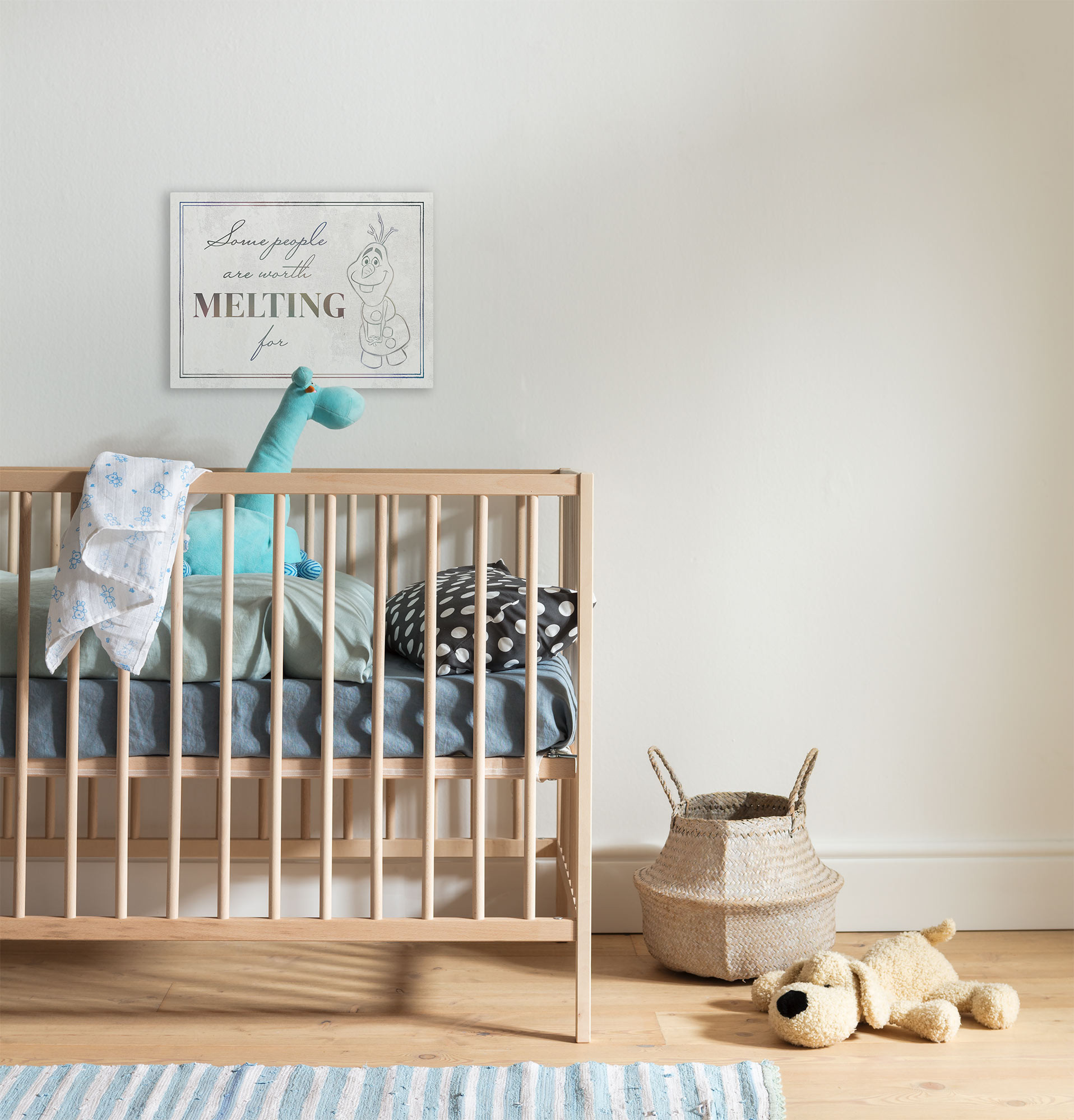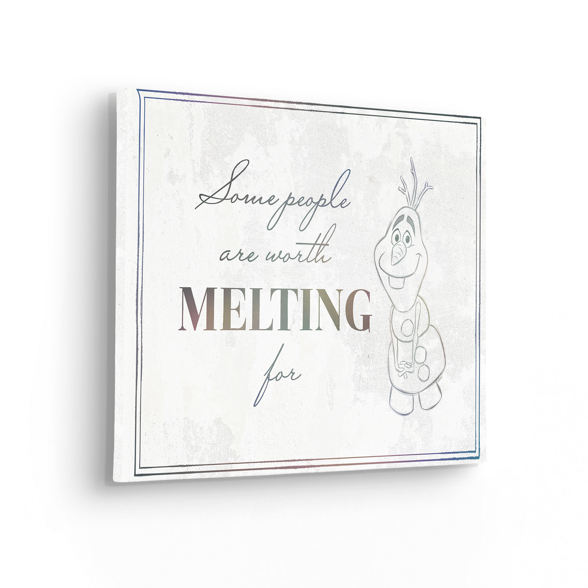 Deze Disney Frozen canvas met Olaf is een decoratief idee voor de kinderkamer. Dit Disney schilderij heeft de tekst 'some people are worth melting for' met een tekening van Olaf en is een aanwinst voor de baby- of kinderkamer.