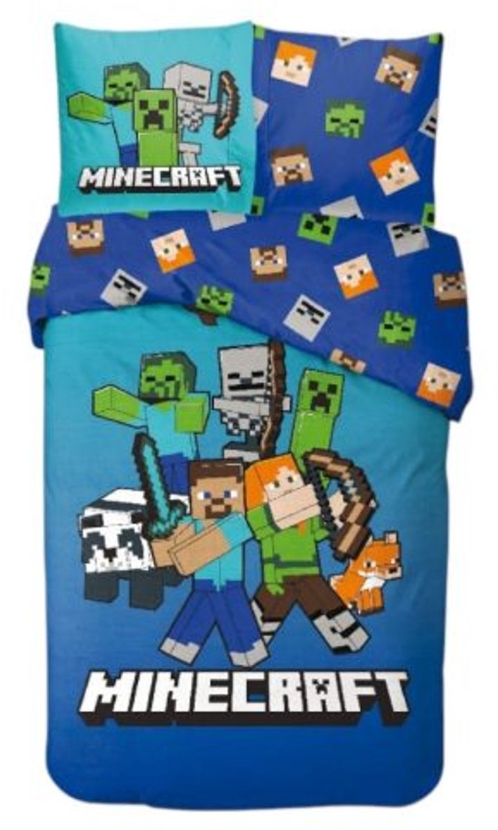 Minecraft eenpersoons dekbedovertrek met bijpassende kussensloop.