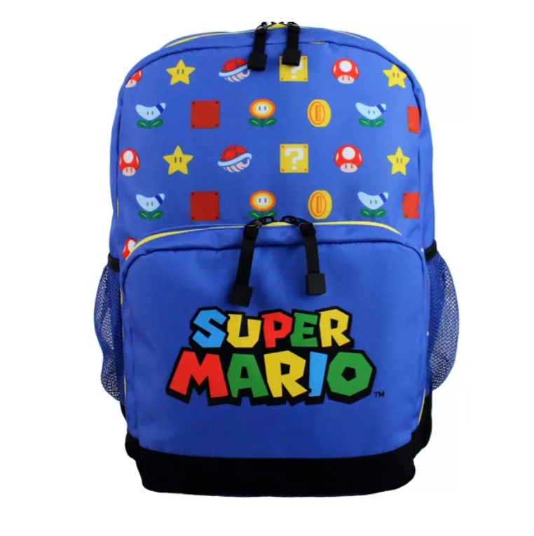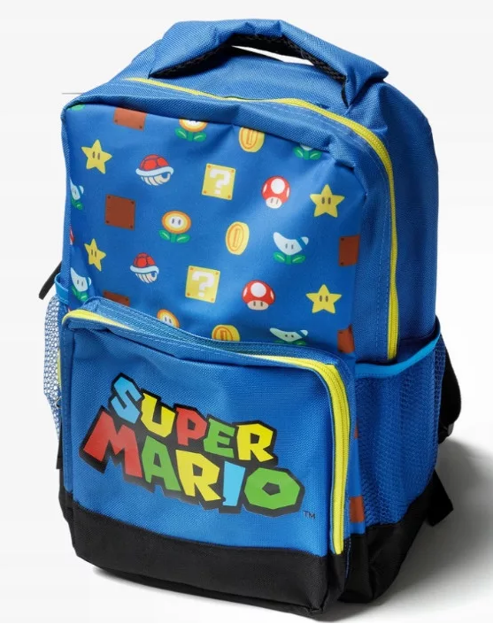 Super Mario Bros schooltas met een hoofd- én voorvak welke beiden sluiten d.m.v. een rits. Het hoofdvak heeft nog een extra opbergvak. Aan beide zijkanten zit een elastisch vak voor het eenvoudig opbergen van een bidon of andere spulletjes die je snel bij de hand wilt hebben. Op de Nintendo rugtas staan verschillende Super Mario icons afgebeeld. De Nintendo rugzak is voorzien van gewatteerde schouderbanden die in lengte verstelbaar zijn. Zo draagt de tas comfortabel. Aan de bovenkant zit een handige draaglus.