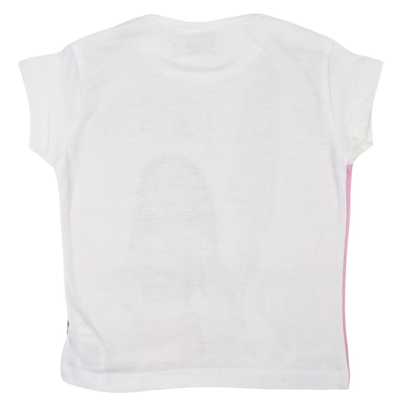 Vaiana t-shirt met witte achterkant.  Op de voorkant een afbeelding van Vaiana, Pua en Heihei.